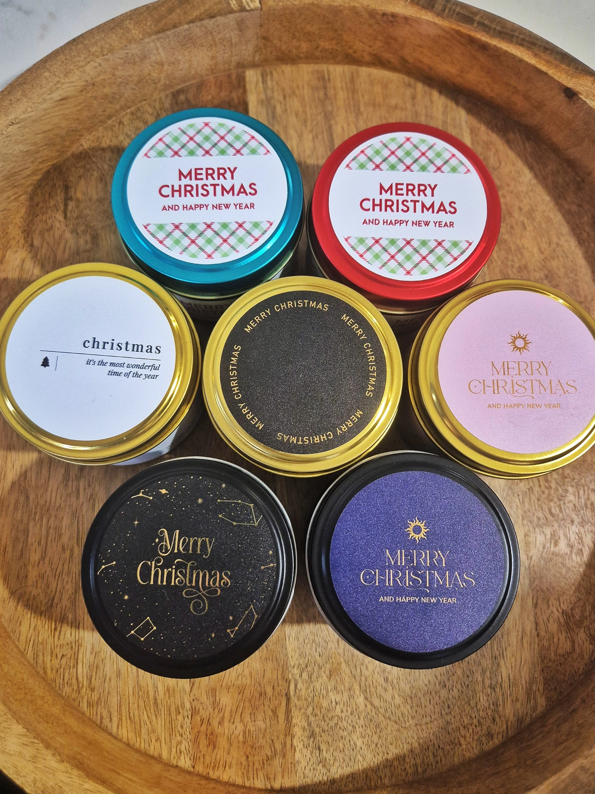 Christmas › Christmas Travel Tin Candles Image 1 of 2 Image 2 of 2 Christmas Travel Tin Candles $15.00 Christmas Travel Tin Candles Color: Select Color Black White Gold Red Green Fragrance: Select Fragrance Christmas Eve Bush Beach Christmas Peppermint Candy Cane Christmas Pine Sugar Plum Spiced Gingerbread Frankincence & Myrrh Quantity: Add To Cart Added! Christmas Travel Tin Candles