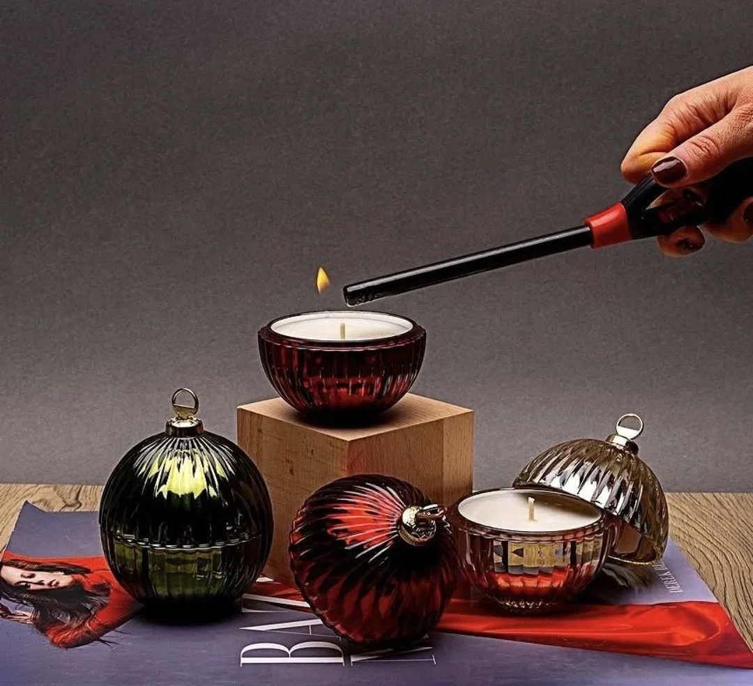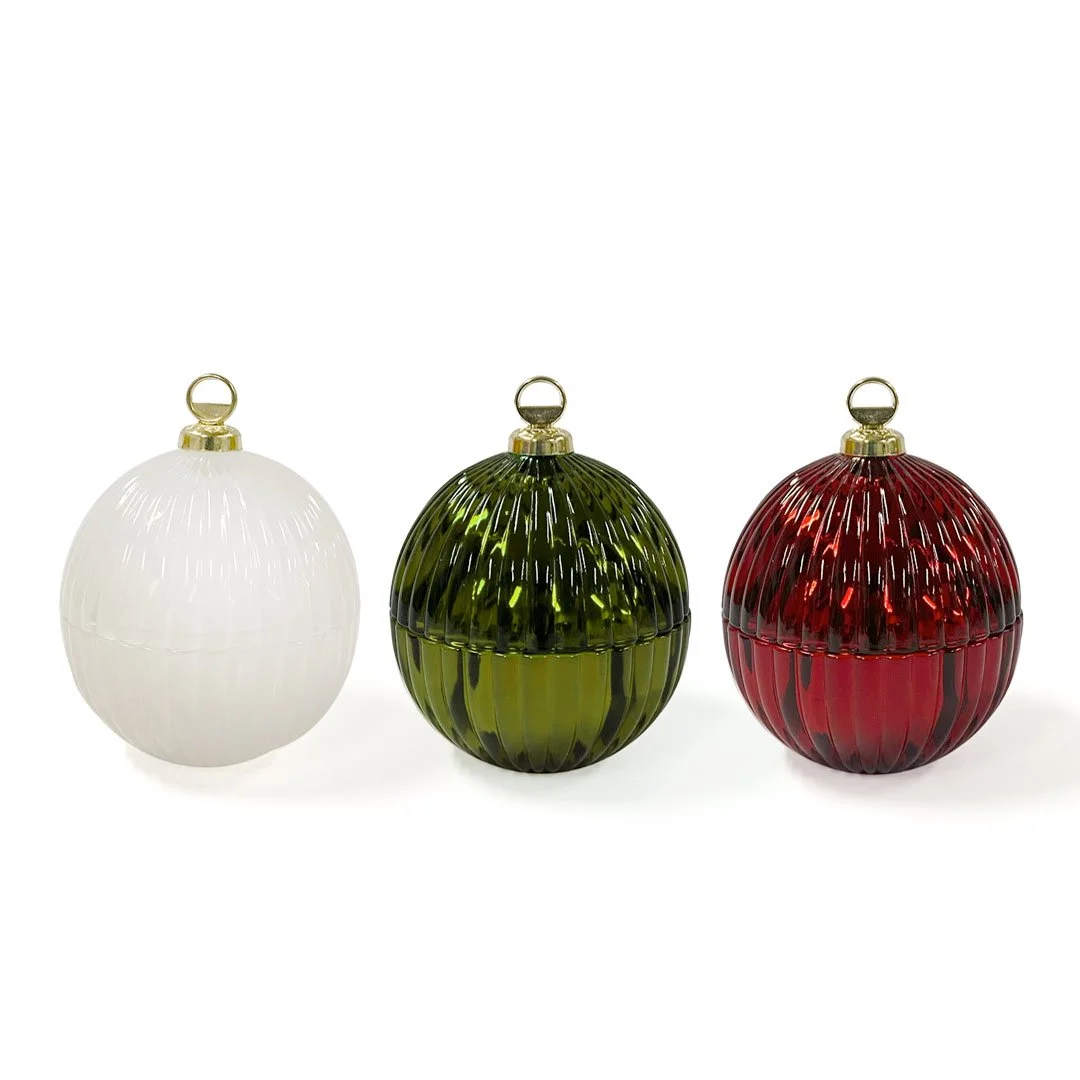 Each two-piece vessel is shaped like a Christmas bauble and crafted from premium electroplated glass with a sleek silver inner lining, removable lid, and sturdy base. Designed for both beauty and function, these miniature candles bring a warm glow and joyful fragrance to every festive space.